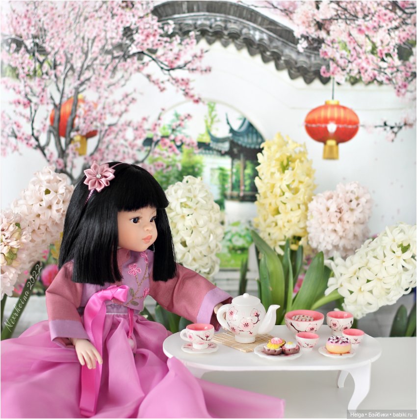 А сегодня хочу показать целый сервиз выполненный в этом стиле. Тут чайник, две чашки, два блюдца, две пиалы. миска и тарелка для сдобы. Ручная роспись цветущая сакура. Сервиз в масштабе 1 к 4 для Паолок и подобных им.