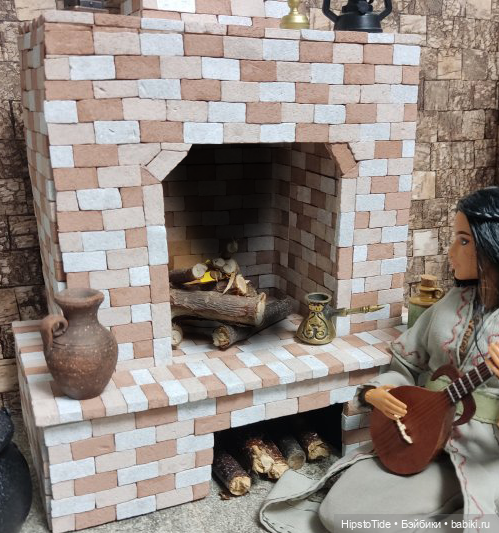 Я планировала «почернить» топку, но только снизу, где должны гореть дрова. Рада видеть, как натурально может выглядеть дымоход в копоти. Обязательно попробую сделать что-то подобное. Следующим этапом планировала сделать «угли». Вот думаю, из чего их выпонить, что-бы естественно, но не пачкали вещи. Пока только один вариант: из черной полимерки и покрыть частично лаком.