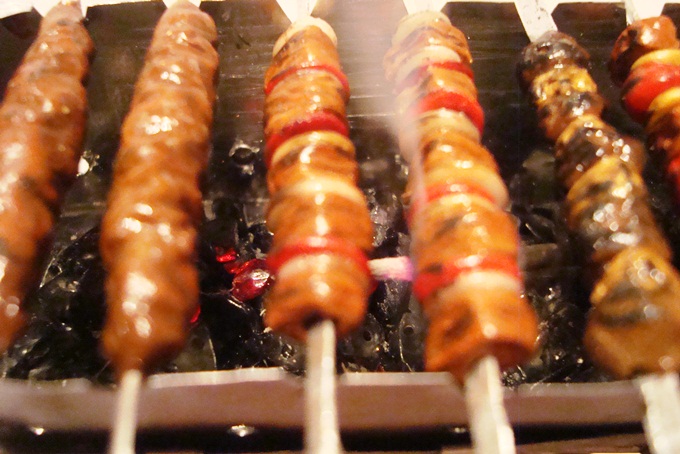 Кое-что тонировалось пастелью (окорок, китайский салат, чеснок...), лук-репку — тенями с перламутром, кое-что — акрилом (персики, хвостики лимонов, зажарочку на пироге...), порей, листья капусты, мясо делались из фимо-колбасок.