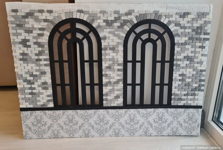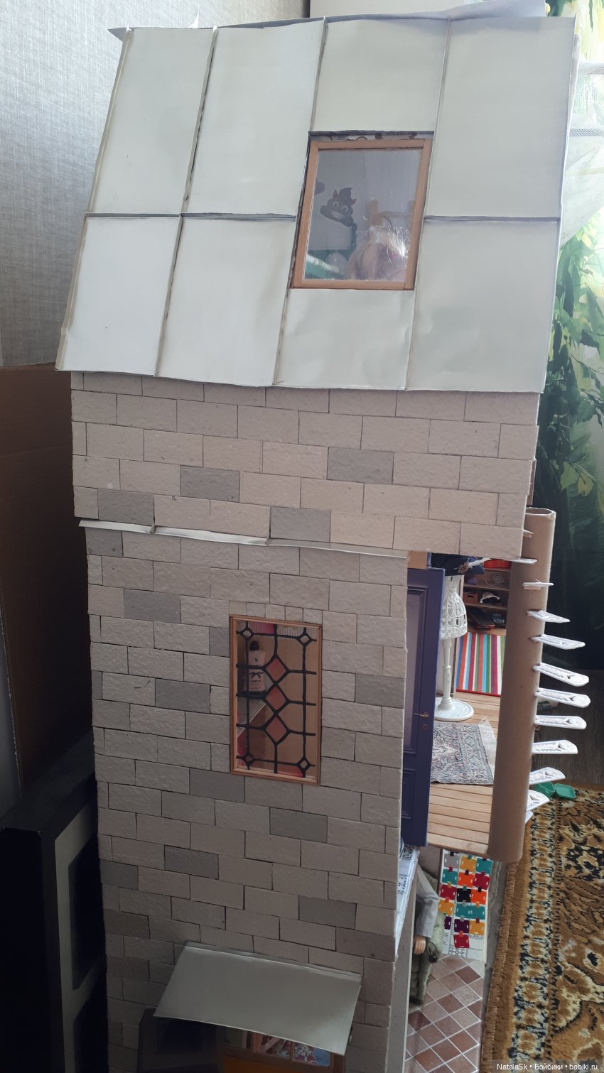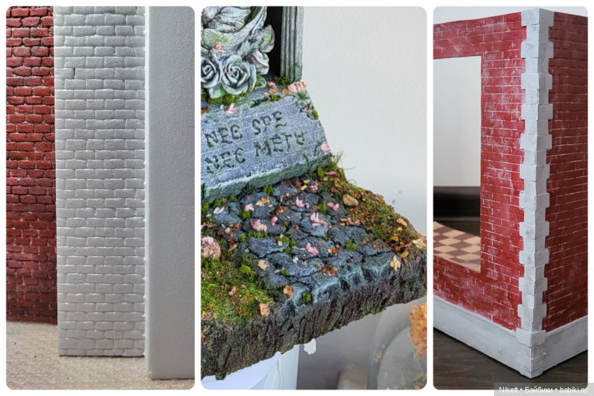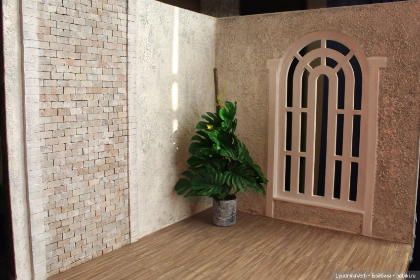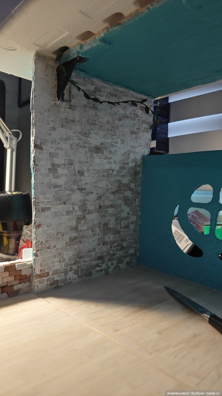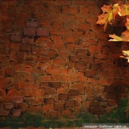 Я раньше сама вырезала кирпичи из пластика, вот пример стены: