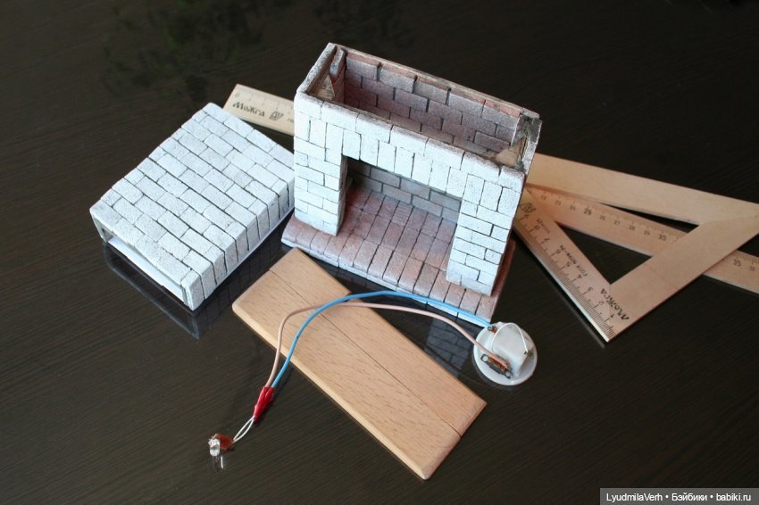 Для отделки боковин камина в хижине Хагрида. Лицевая часть сделана из настоящих мини-кирпичиков.