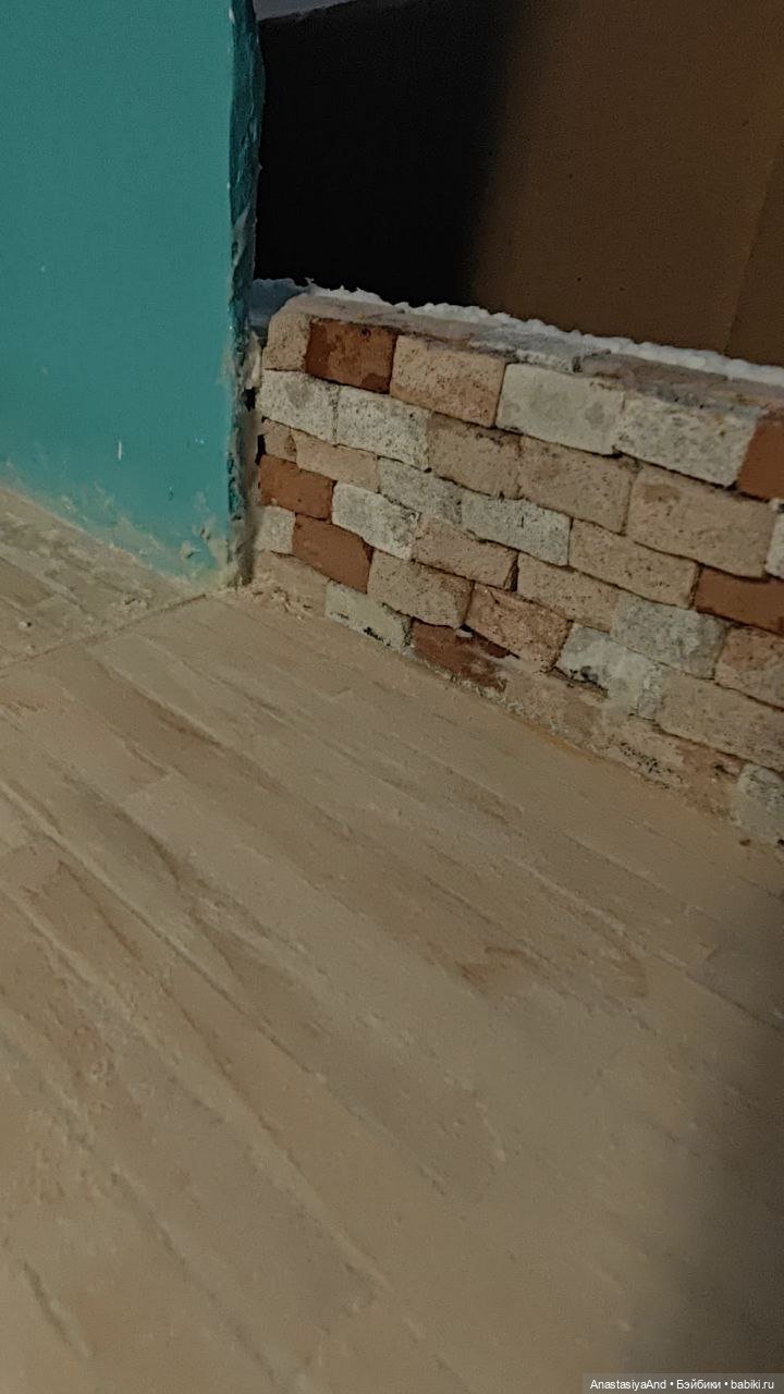 Слева на стене я ещё старалась, подбирала кирпичики под размер, потом они у меня стали заканчиваться и как-то сложнее уже было подбирать, делала я не быстро, где-то месяц что ли…