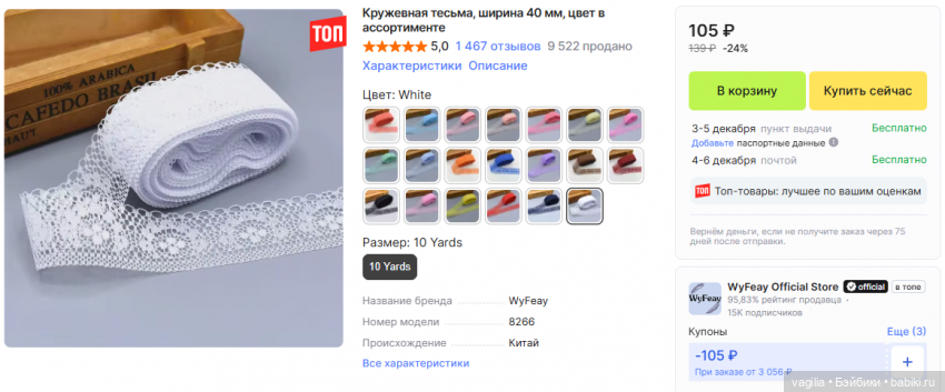 🎀 Первые три картинки о тесёмочках 😃 Я с вами делилась как-то в августе, что при распределении хомячьих запасов по новым коробочкам, одна из них оказалась практически пустой 😑 Ага, как раз речь шла о шнурочках, кантиках, резиночках и рюшечках… На дворе середина ноября, и та самая коробочка теперь еле закрывается… Заполнить пустоту в ней помог всё тот же ВБ 😁 со своими вкусными предложениями и акциями! Считаю, это очень удобно и выгодно, покупать именно лотами и обрезками (весом! да, есть и такие лоты)…