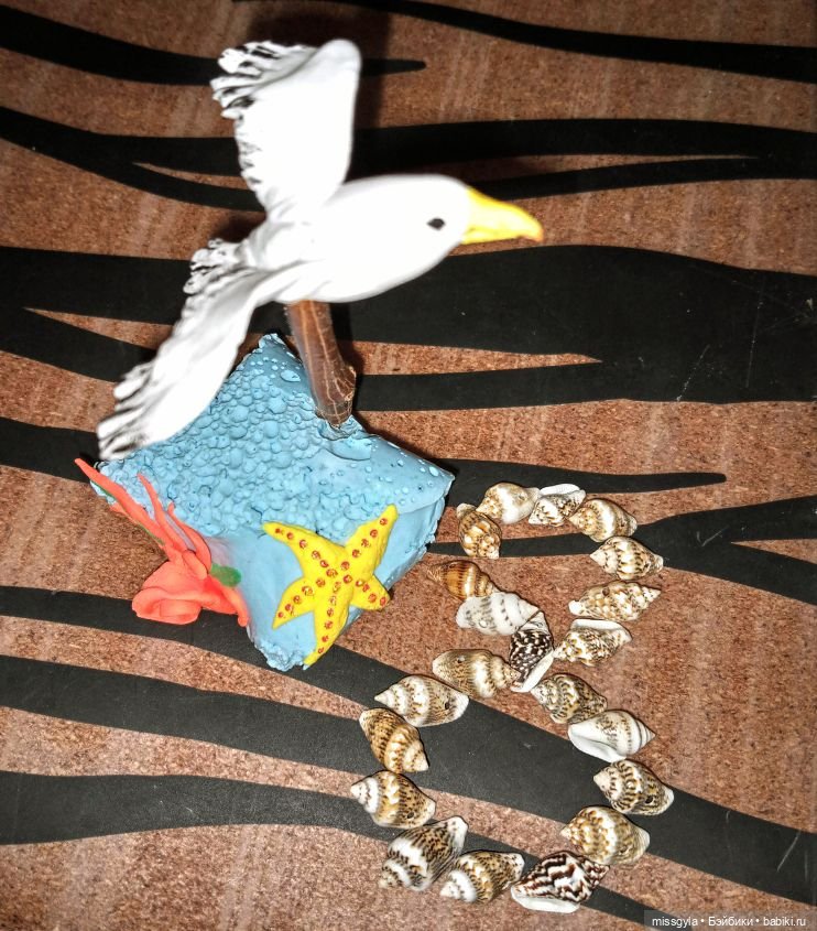 Морская звезда ( основа- подсохший пластилин, сверху загладила мягким)