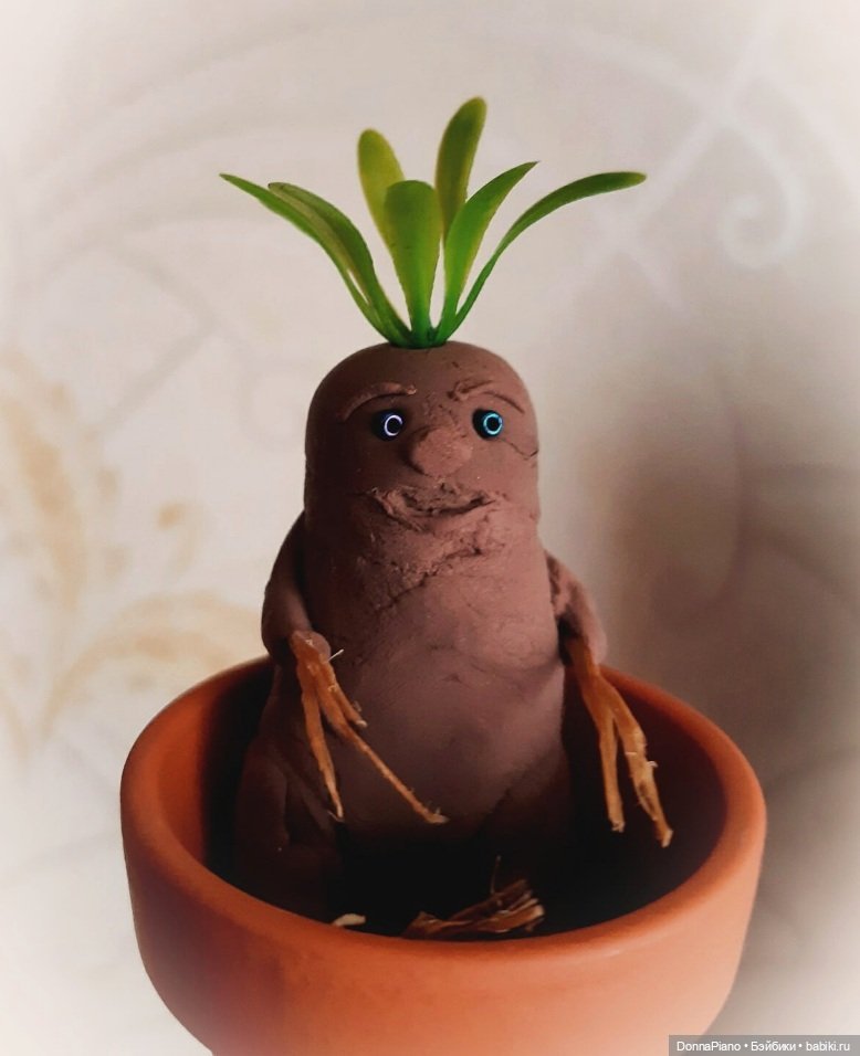 А я мандрагорышей лепила из глины- самозастывайки, из неё фигурки потяжелее получаются, чем из возд.пластилина