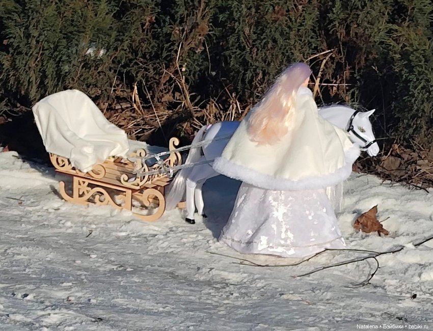 Сани ты заготовила практически летом, как и полагается, теперь нужны будут русские герои сказок или дед Мороз со Снегурочкой, ну и три белых коня желательно)))