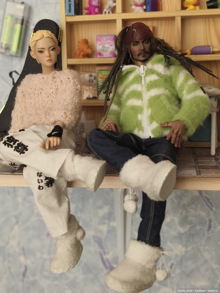 А тапочки да, милота необыкновенная, мне давным-давно подарили их для других еще кукол, одни побольше, вторые поменьше размером, теперь вот все ребята носят))