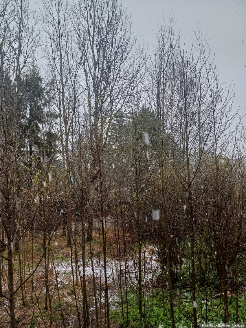 Когда на электричку садилась, уже почти растаяло, но хлопья сыпались только так. Промокла до нитки! И зонт не спас.