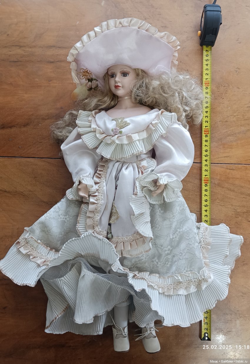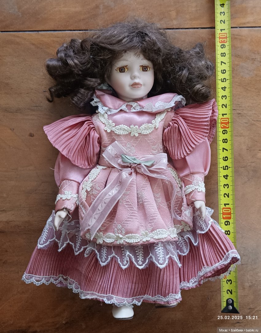 , так что даже в какой-то момент я думала сделать тоже конёчки. Напрашивается такой образ в связи с тем, что головки фарфоровые, а вот ручки текстильные, и хотелось спрятать их в варежки или муфточку. Получились около 10 см ростом