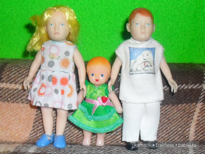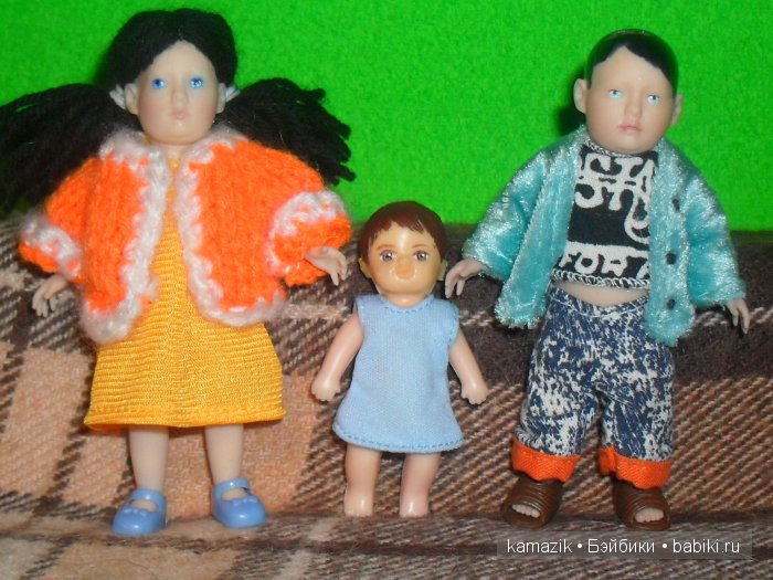 Малыши на самом деле интересные. Только девочку можете попробовать взять в другом аутфите, коричневая кофточка окрашивает винил. А вот у мальчика все в норме, у него кофточка тоже коричневая, но более светлого оттенка — окрасов нет.