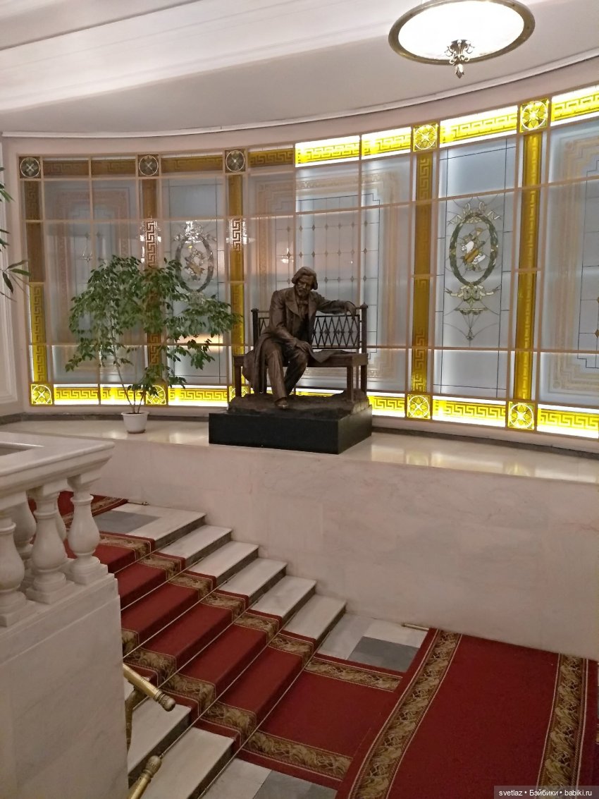 Лестница была удивительная и очень для меня подходящая — я по этой лестнице до самого первого этажа хотела спуститься. Не пустили! Сказали, что опасно по перилам съезжать таким маленьким детям, как я. Так ведь и большие не съезжали, никого не пускали! Наверное, лестница эта только для красоты имеется.