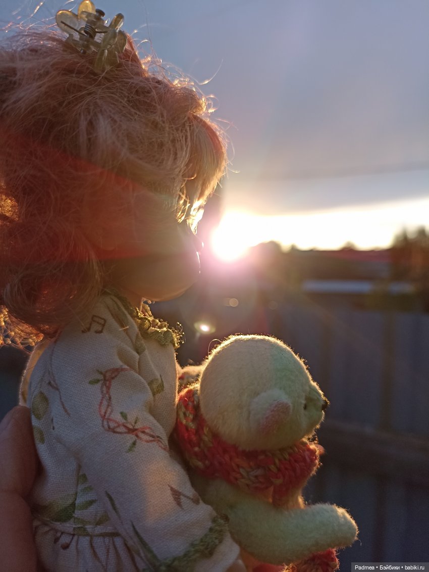 Мирка повзрослела, сменила место жительства ( приехала ко мне ) и сегодняшний свой день провела с новым другом, точнее подругой — мишуткой Мятой. Ведь иногда так хочется просто посмотреть на закатное солнышко, понюхать цветочки, понаблюдать за цветением яблони рядом с тем, кто тебя понимает и без слов)