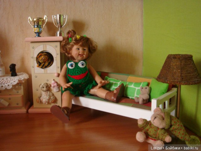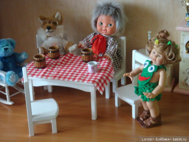 Муж до сих пор с недоверчивым любопытством косится на увеличивающиеся куклополки. И морально готовится к строительству куклодома )).