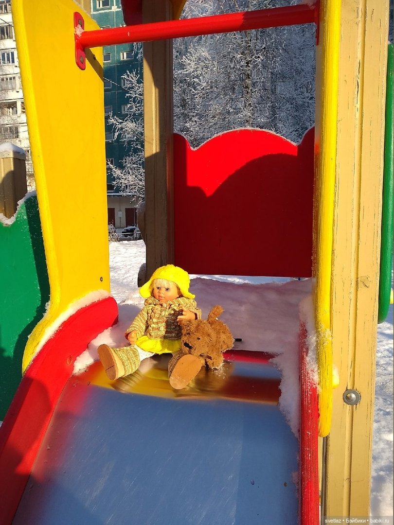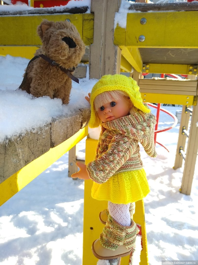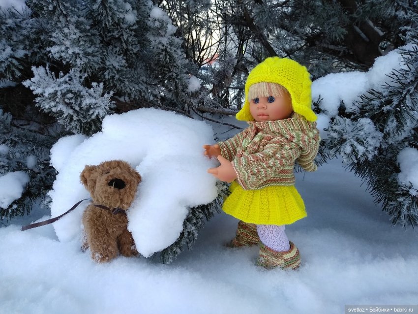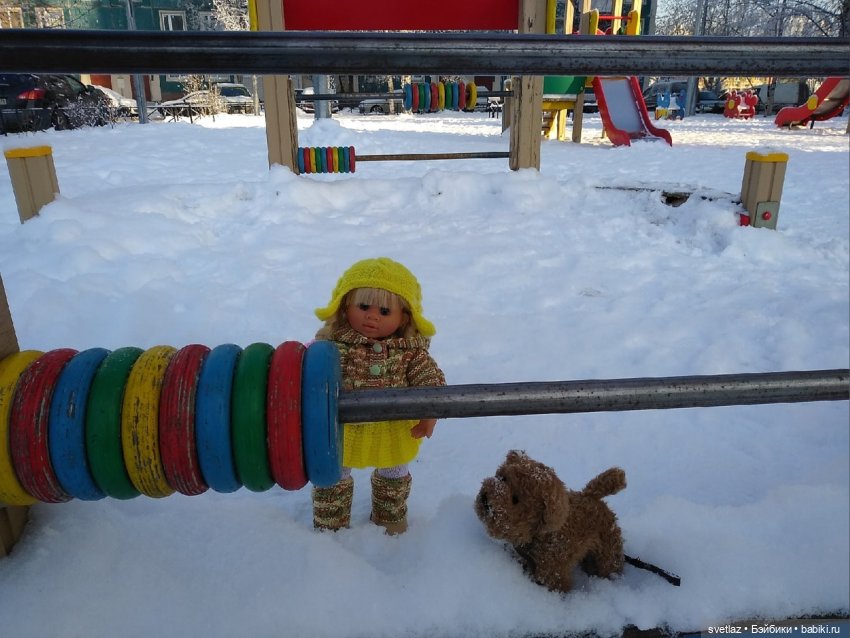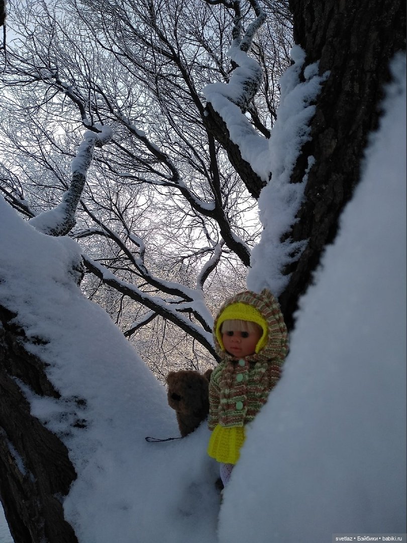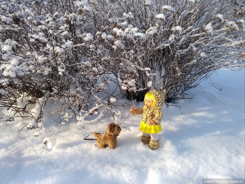 Наряд у девчушки отличный, никакой мороз не страшен. Пират — преданный друг, тоже мороза не боится:)