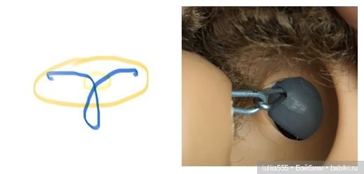 Я не смогла рассмотреть в головушке сломана или нет эта пластинка, никакими имеющимися средствами не смогла достать. Сейчас на дачу, а потом — ремонт куклы.