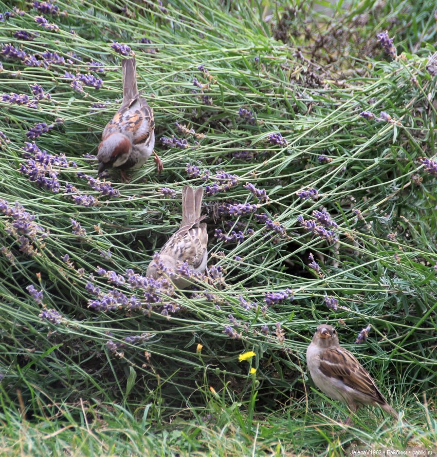 Очень люблю природу и всё, что с ней связано. У меня есть почти домашние воробьи. Зимой я их подкармливаю, а они потом и летом с удовольствием прилетают. Когда отцветает лаванда ( у меня их три больших куста ), я её обрезаю только после того, как воробьи съедят все семена. Каждое лето история повторяется.