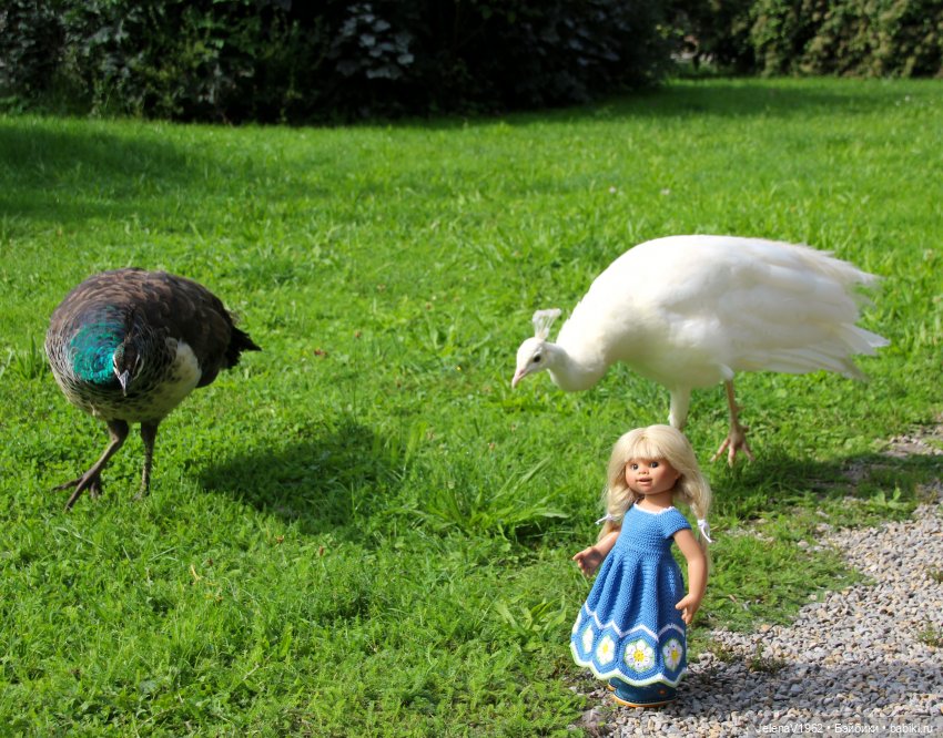 Любуюсь нарядами, павлинами, цветами, бабочками. Гретель явно нашла с павлинами общий язык, а Лотта как преобразилась-красавица! Очень понравились фотографии с павлиньими нежностями, они все хороши, но белый просто роскошный красавец, я тоже не знала, что есть такие. Воробьи на лаванде повеселили.