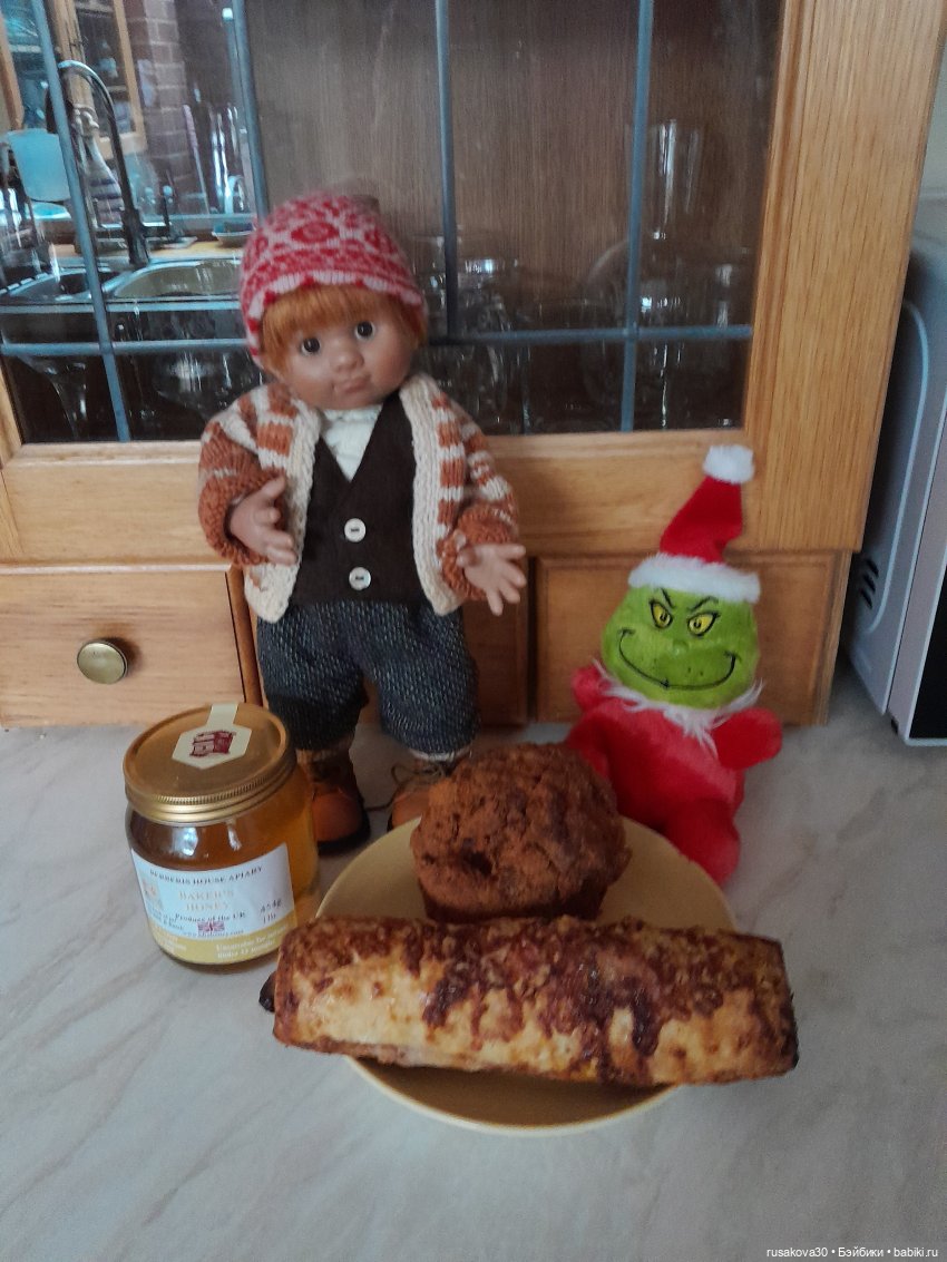 Купили мед, шотландское яйцо и рождественскую сосиску.