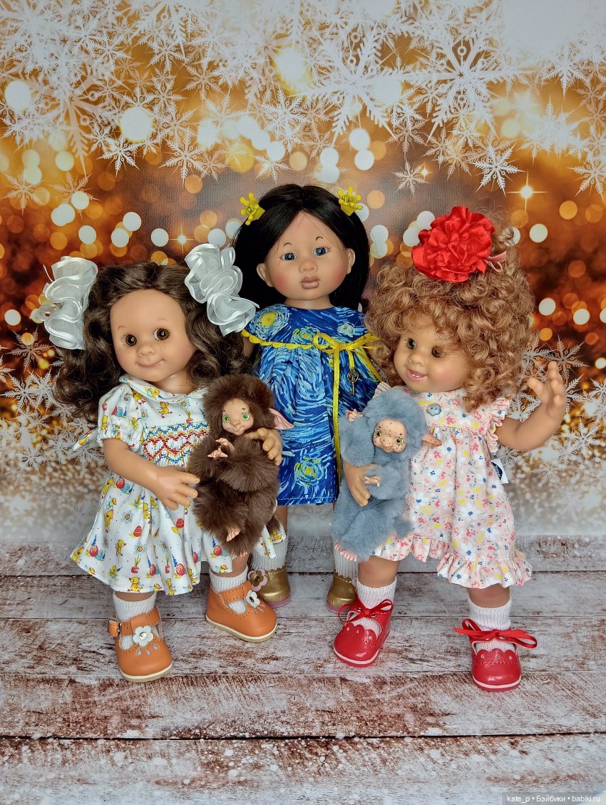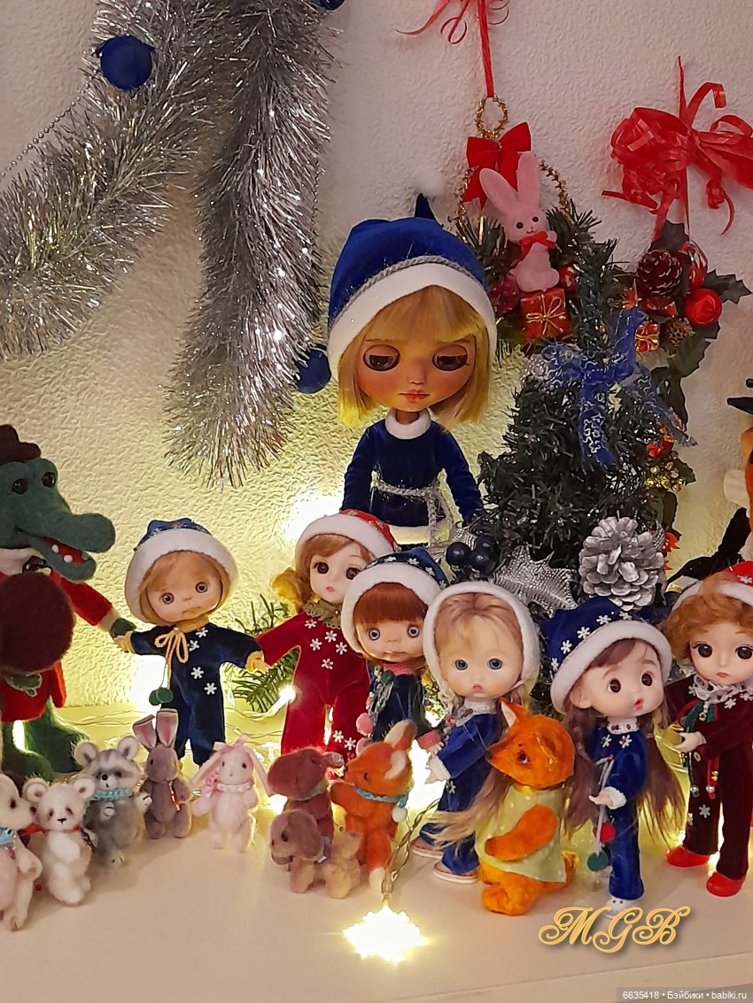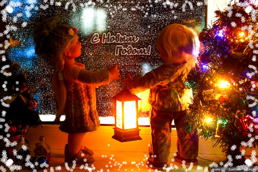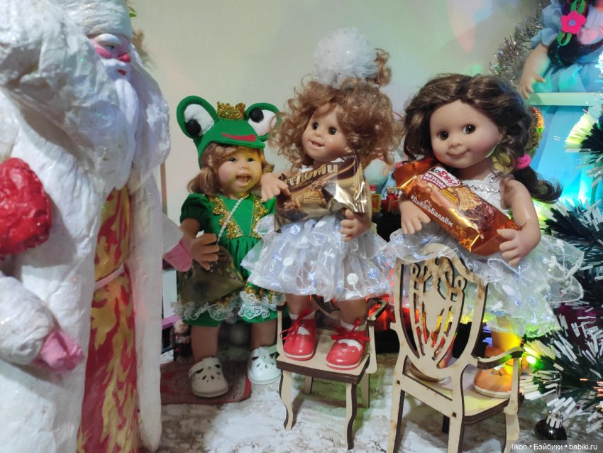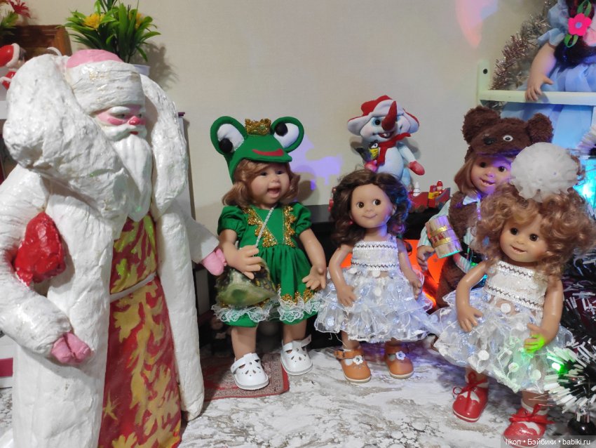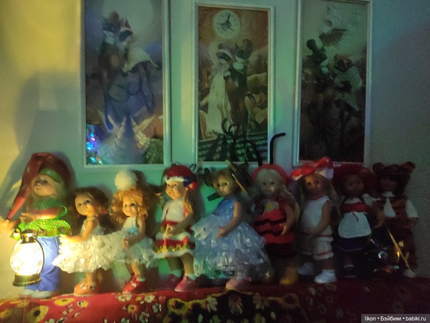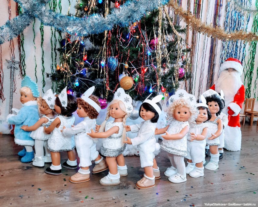 И вот настал долгожданный момент — стрелки часов приблизились к полуночи. Дома все уснули и в тишине только слышался топот маленьких ножек. Куколки собрались все вместе идти на елку