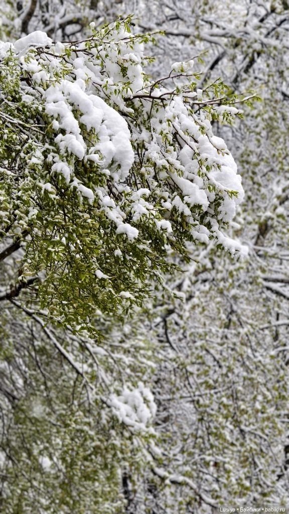 Но у нас сегодня снег, мокрый, тяжелый, иные деревья не выдерживают, ломаются😵💫