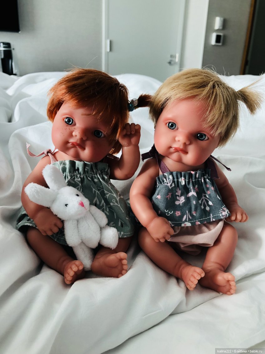 Пока вязала с упоением, то как-то незаметно пупсят прибавилось), похожих, той же фирмы, но полностью виниловых. Они чуть меньше, 26 см.