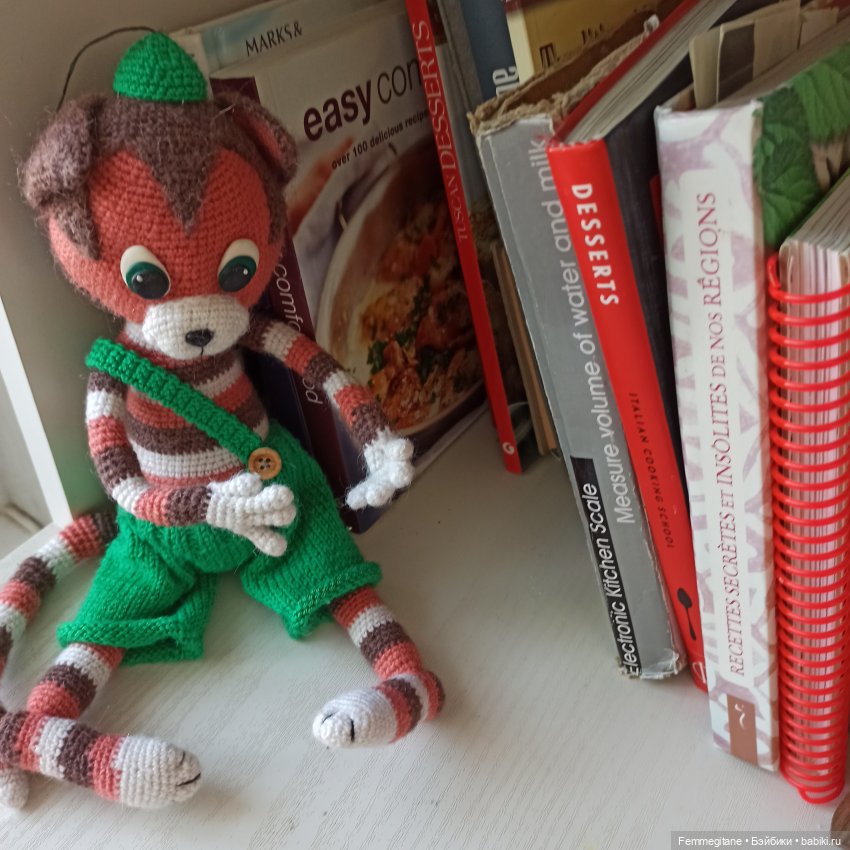 Финдус — текстильная кукла. У него две точки артикуляции. Крутятся ноги :) Он может, благодаря этому, стоять и сидеть, принимать разные позы.