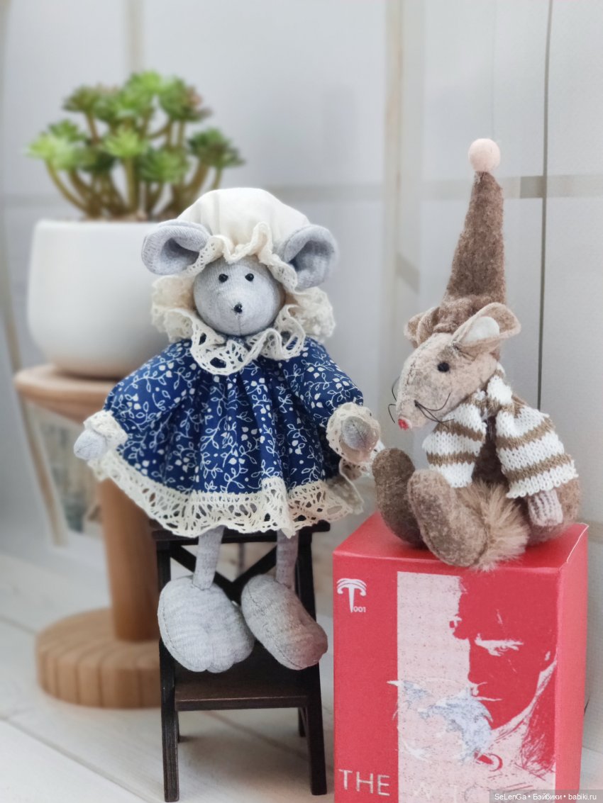 Мышка-бабушка (были очки, но я их позаимствовала и где то теперь они в пакетиках валяются) и внучок)