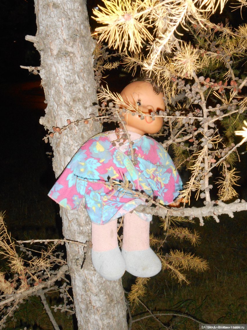 Забегая наперёд, скажу, что днём я нашла владельцев пупса. Мамочка отказалась принимать собственность обратно, ибо дочка выросла и теперь играет Барбями. Поэтому кукела и вынесли в песочницу на расправу мелкотне. Хорошо, что за вечер с ним не успели расправиться, а на рассвете пришла я.