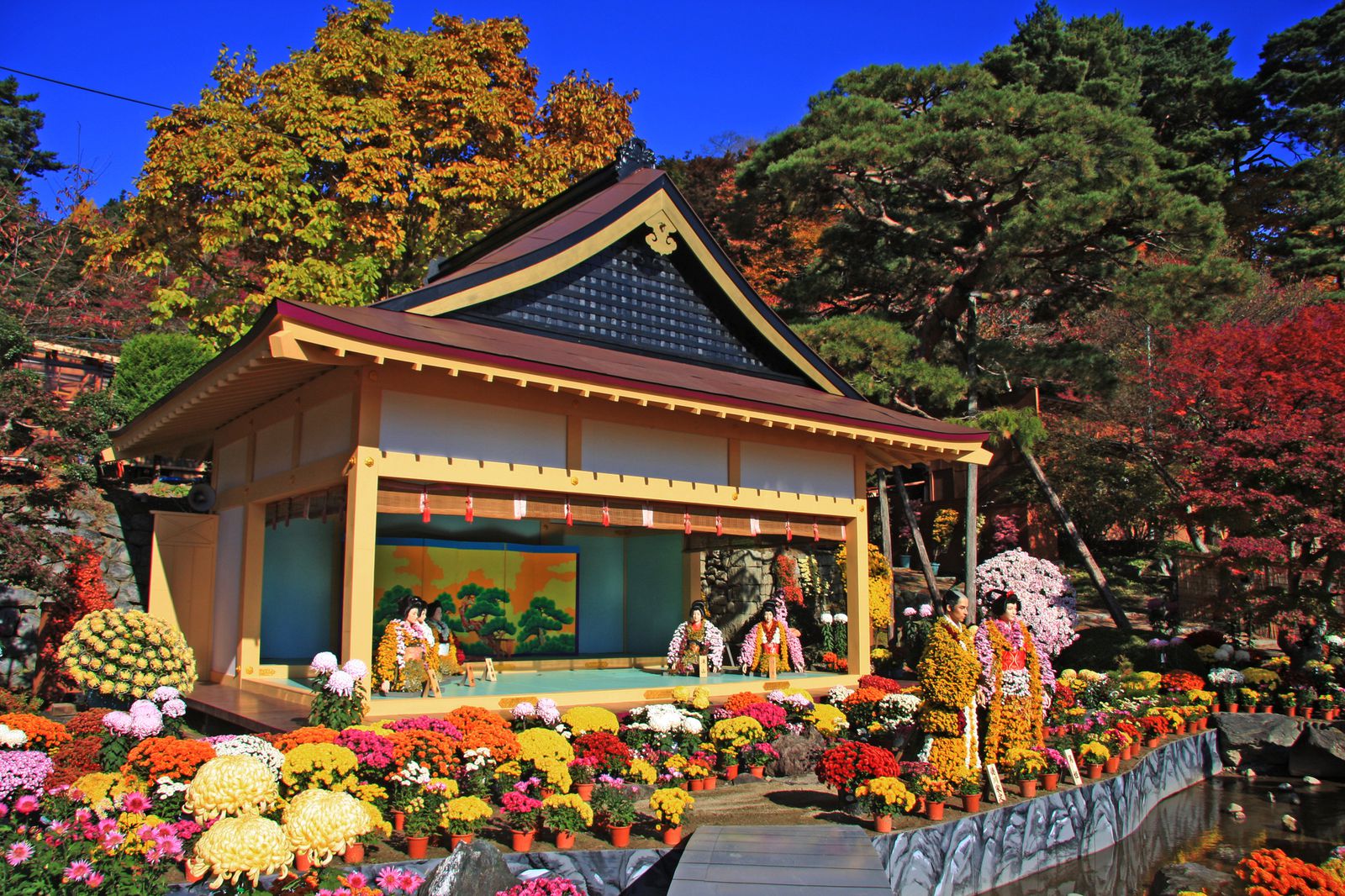 Осенью в городе Нихонмацу и Хираката проводятся ежегодные выставки кукол из живых хризантем. В основном используются цветы средних и мелких размеров. Выставки очень интересны и увлекательны. Чаще всего поражают своей оригинальностью, творчеством и грациозностью. Восхищает подборка сочетающихся по цвету хризантем.Итак, посещение выставок кукол из живых хризантем очень интересно и увлекательно, привлекает множество туристов, ценителей кукольного и цветочного искусства японских мастеров.