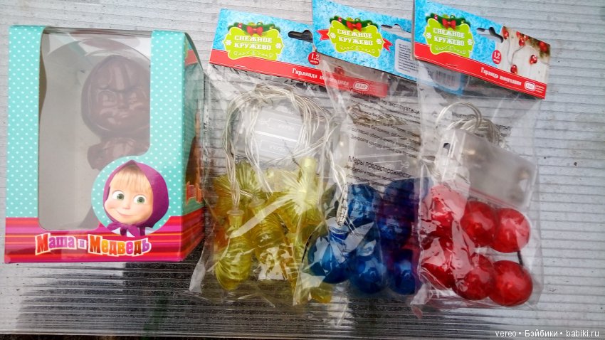 Такие там взял. Fix Price. Но они намного короче, меньше лампочек и они в шариках. Вот как раз завезли шоколадных Машек.