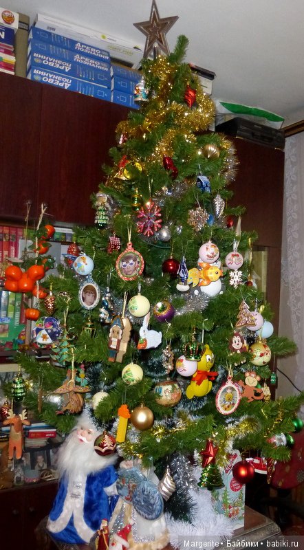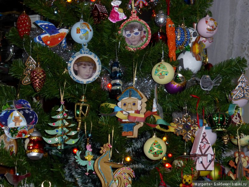 Мне очень нравится, когда на ёлке висят старые и новые игрушки, а также игрушки, сделанные своими руками.