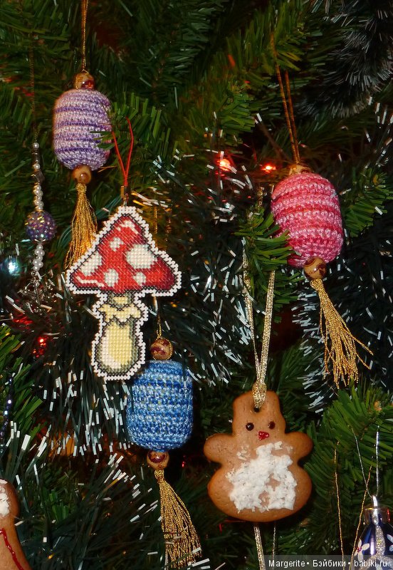 Раньше только я сама развлекалась вышитыми, вязаными, шитыми и прочими игрушками, а в прошлом году ко мне младший сын присоединился. И тут уже все — елки высотой 180 см нам категорически перестало хватать :)