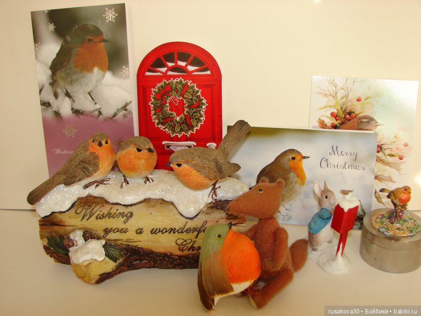 Символ английского Рождества и Нового года - малиновка (Robin).