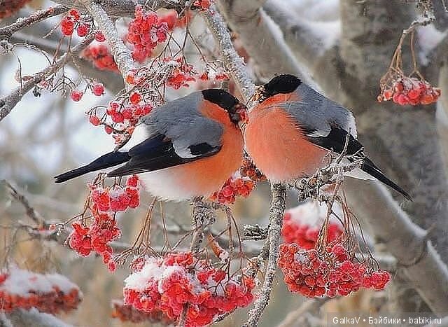 А ко мне недавно, прилетели снегири)), давно о них мечтала!