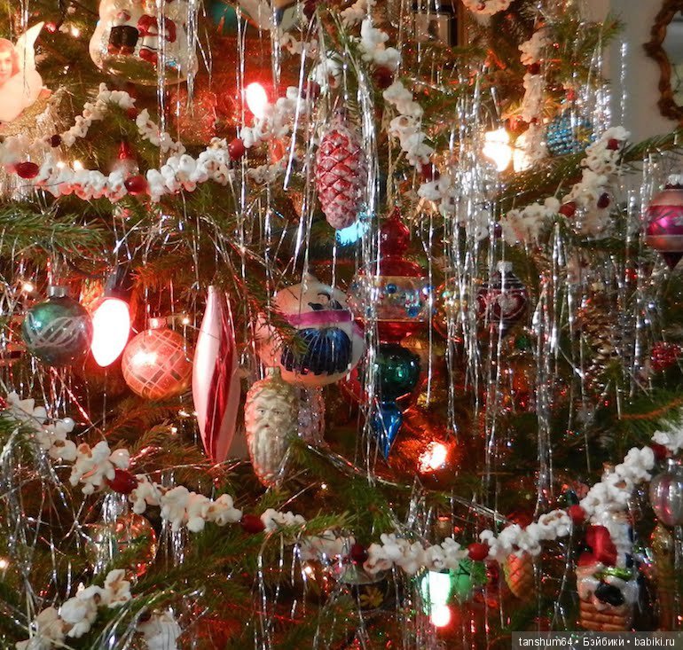 И обходились без пожнадзора! И потолок, и стены, и сама ёлка была украшена большущим количеством мишуры, бумажного серпантина, и даже кусочками белоснежной ваты на ниточках: