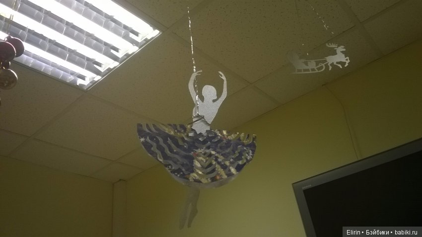 Девочек-фигуристок и балерин мы с мужем делали сами, они вырезаны из картона, покрыты золотой и серебряной краской, юбки-снежинки вырезала из упаковочной бумаги для подарков. А еще в этом году
