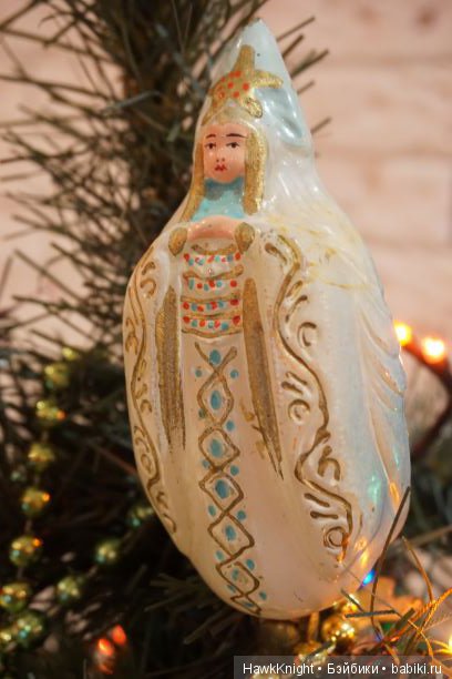 А вот моя любимая елочная игрушка — все остальные новые, современные, а она единственная старенькая, местами облупленная, но всегда на вершине елочки)