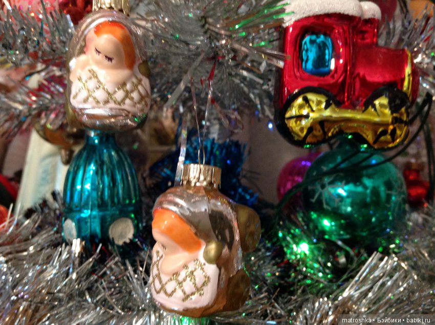 Моя ёлка — на комоде, от малышей подальше и любимые игрушки из новых — детки, ботиночки и паровозик — для Вас! Старые, стеклянные — так же, — у мамы!