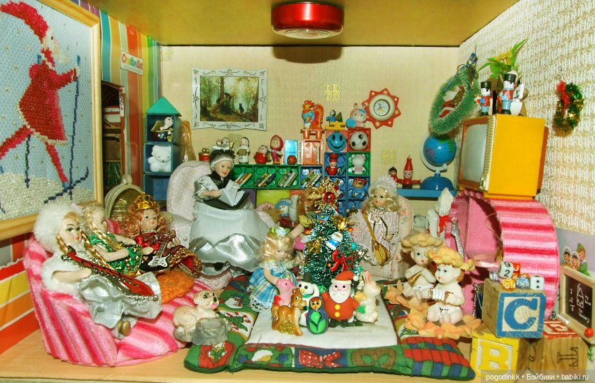 В декабре в Фикспрайсе купила домик в зимнем стиле и пришла идея сделать домик Санты, тк у нас уже был конструктор Плеймобил на эту тему. Добавили туда другую мелочевку. Нарядили кукол в зимние наряды, спасибо за это мастерицам с сайта! Мастерскую Деда Мороза делала с 9и летней дочей ещё 3 года назад для школы, надо было обновить наклейки.Открытки закрепляю прищепками к подарочной, новогодней ленте, стараюсь выбирать по темам: Зарубин, со Снегурочкой и тп. Сейчас висят открытки с птицами и животными. Далее просто фото. К сожалению фото загрузились не по порядку…
