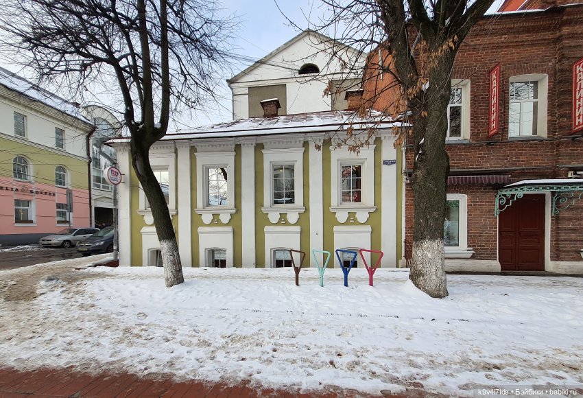Когда-то здесь был книжный магазин. Об этом напоминает теперь только читающий ангелочек на крыше. В настоящее время — это сувенирный магазин «Василиса».