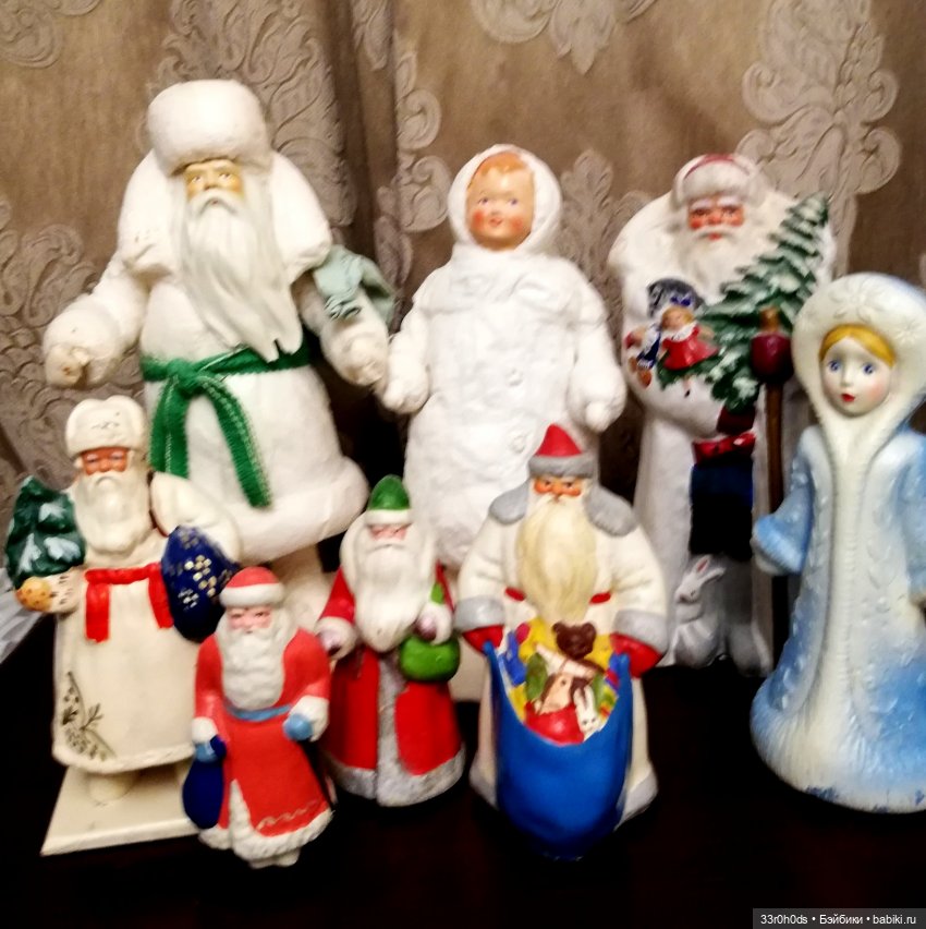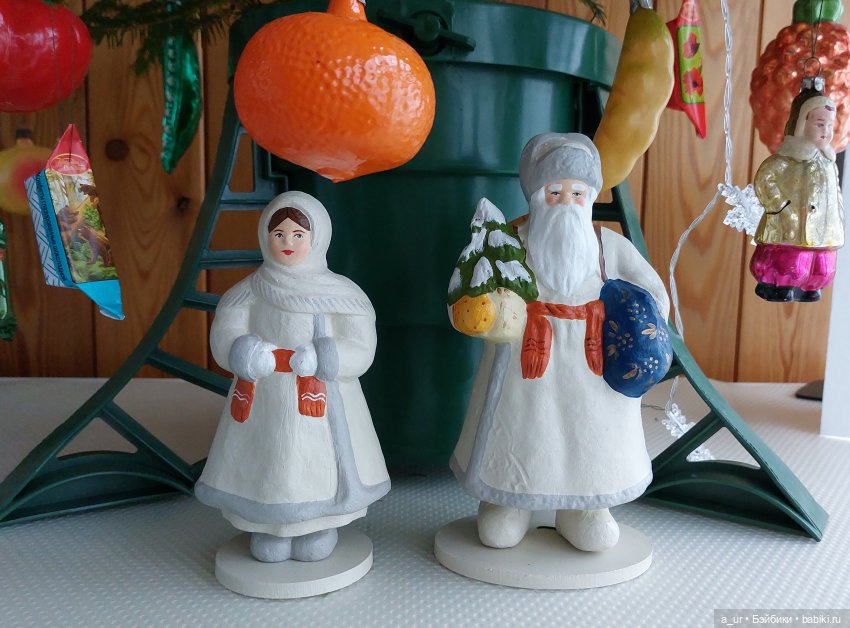 А под ёлочку я в этом году купила реплику старых Деда Мороза и Снегурочки. И хотя они новые, но мне очень нравятся. Сделаны по старым технологиям и красиво расписаны художником.