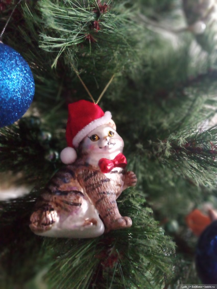 А я каждый год сажаю на ёлку старые игрушки на прищепках.В этом году старый кот соседствовал с новой стеклянной игрушкой.