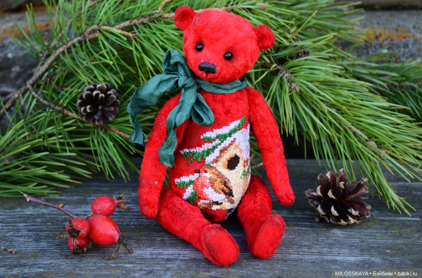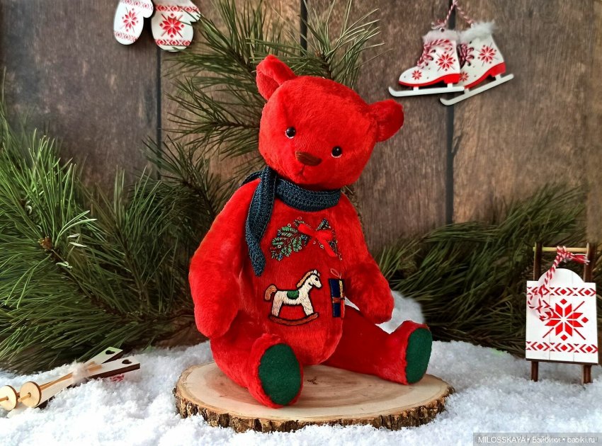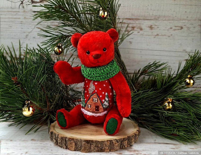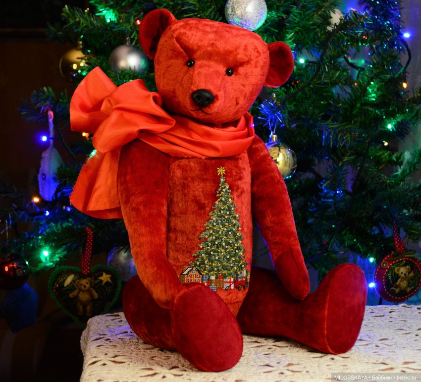 Я в том году тоже сшила большого красного мишку. Одно фото осталось)