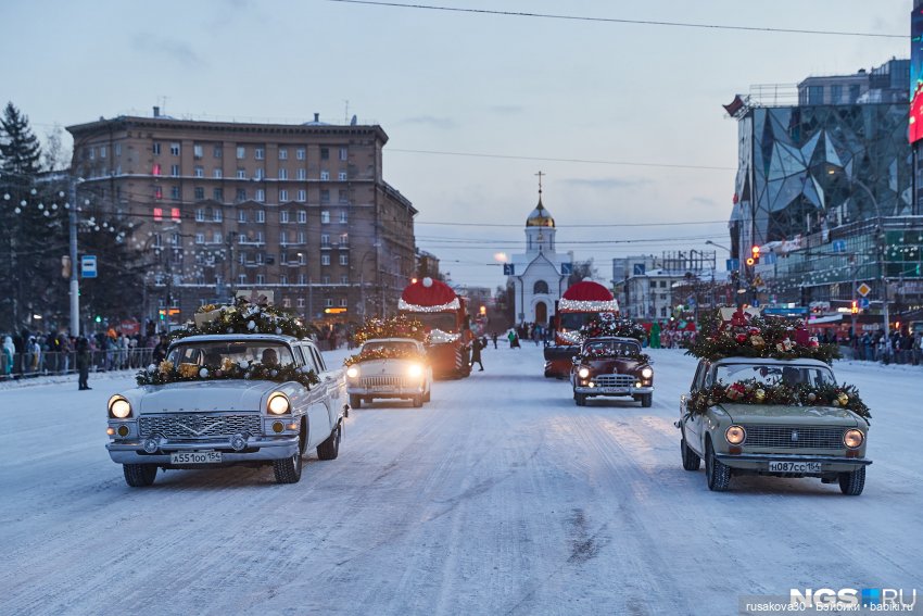 Новогодний парад Дедов Морозов и шоу ёлочных игрушек прошло в Новосибирске .