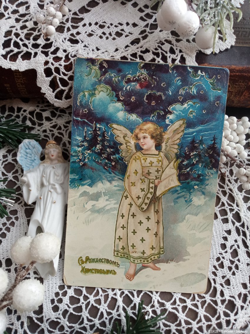 Открытки русской художницы Елизаветы Бём хорошо известны, отличаются своим стилем. У меня в коллекции около тридцати её открыток, но рождественская открытка только одна.