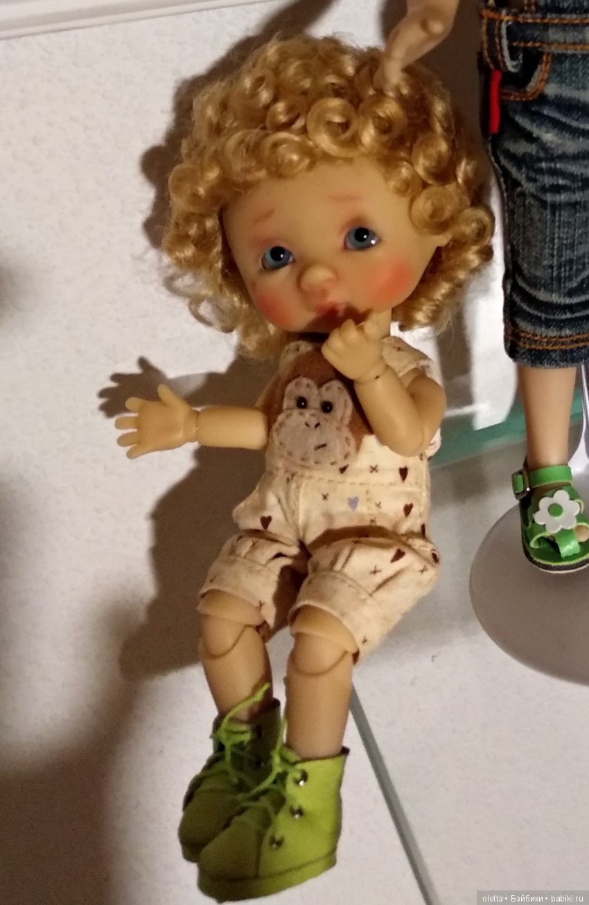 С волосиками пока не складывается, очень трудно подобрать малышовый паричок. Но у нас есть мечта и надежда, что одна очень хорошая девочка с этого сайта, у которой таких малышей живет целая семейка, нам сошьет самый лучший паричок, самый подходящий и самый удобный.