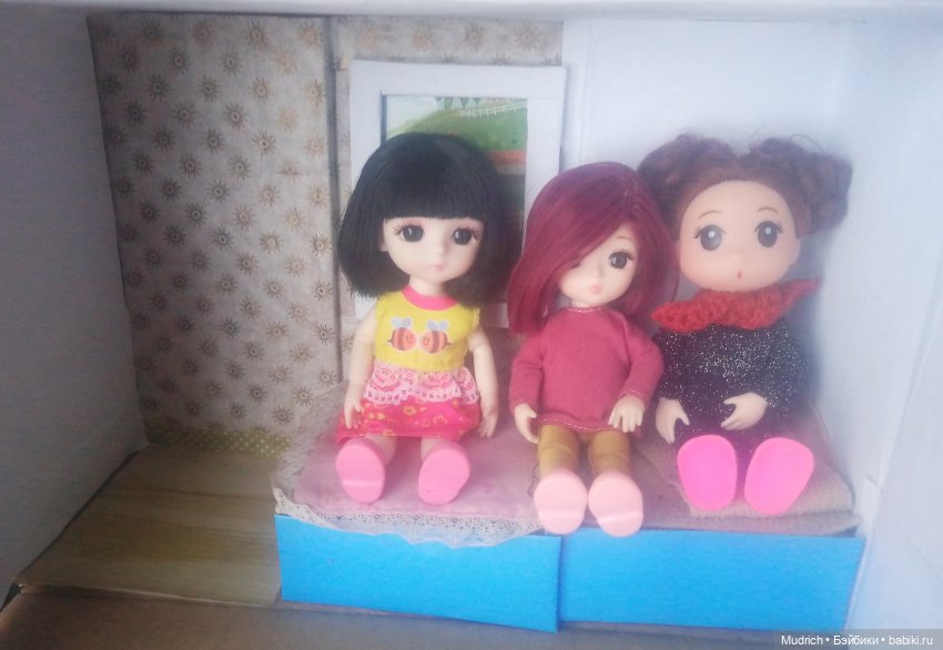 Хозяйка нам домик только обещает. Голые стены хотя бы есть только у Бонди (в середине). А хозяйка только дочкиным куклам и шьёт, и клеит… Хорошо, что Лилька (кукла дочери) добрая — пустила к себе в спальню сфотографироваться.