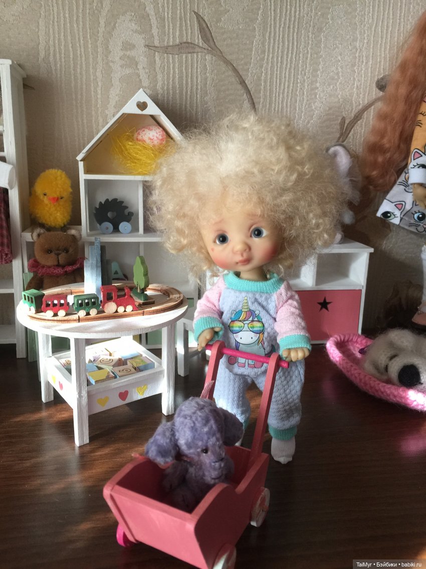 Думаю: дай-ка попробую мелкоту. Стала искать Лати Берри, посчитав, что это самый недорогой вариант. Нашла. Приехала, не то. Ладно, сижу дальше. На тот момент у меня остался один миник, Минуш и хохотун Вихтель. И вдруг мои две кукольные подруги в один момент шлют мне ссылку на Эллеменно. А зачем мне, думаю, Эллеменно за 50 тыщ и больше. Ну открыла) И нажала сразу купить, так как цена была совсем не 50) Спасибо, милая Аня (remiA), очень люблю твою малышку и стараюсь баловать (открою секрет, мы ждём братика)))