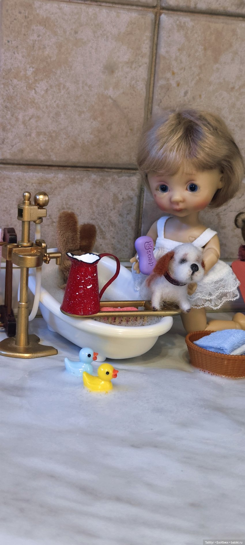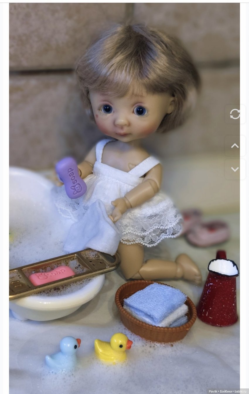 Доброго времени суток! За последний год много кукол от меня уехало в новые дома, но малышка Никуша была одной из самых желанных кукол, поэтому она со мной уже четвертый год. Последнее время малышей от Никки Бритт совсем не показывают, все видимо наигрались и хотят что то новенькое, но моя Никуша не перестает радовать меня своей детской наивностью и непосредственностью. Вот и сегодня, пока я была на работе Никуша устроила большую стирку.