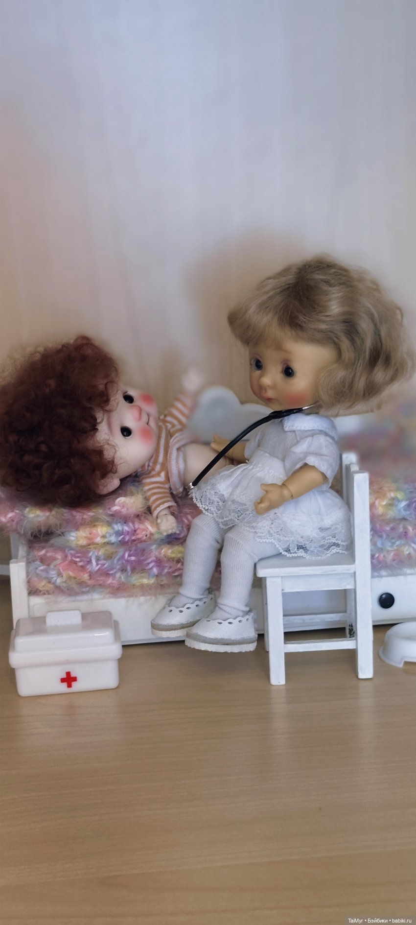 Вот и моя малышня сегодня с упоением играет в больницу. Никуша врач- профессионал, а самый мелкий Андрюшка стал ее пациентом.